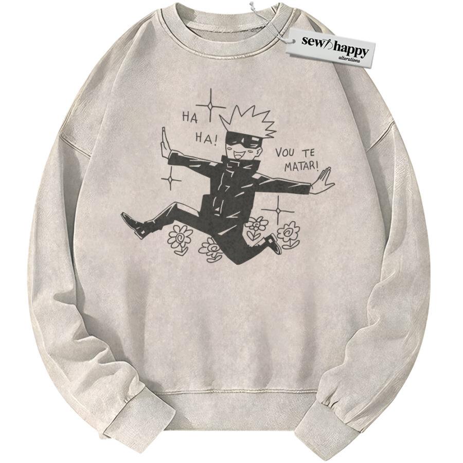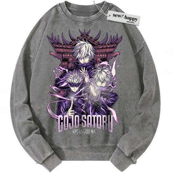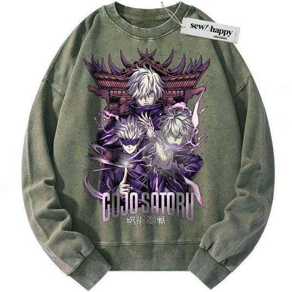 Wash Sweatshirt Satoru Gojo Sweatshirt, Jujutsu Kaisen Sweatshirt, Anime Sweatshirt, Vintage Sweater