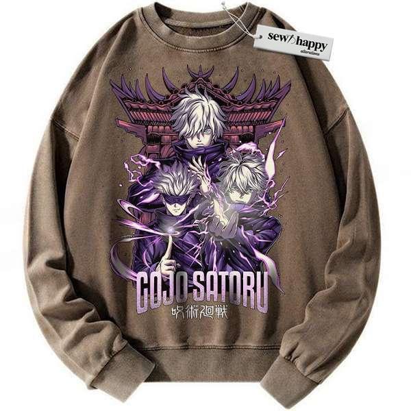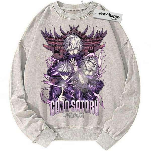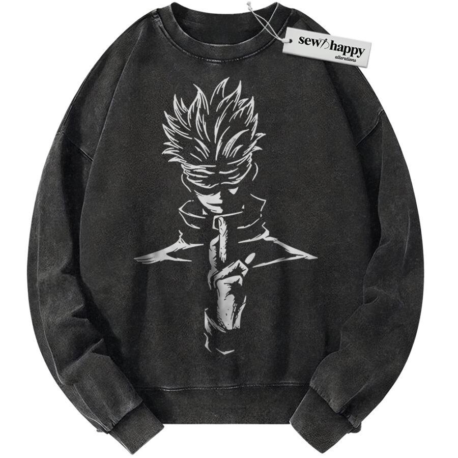 Wash Sweatshirt Satoru Gojo sweatshirt, Jujutsu Kaisen sweatshirt, Anime sweatshirt, Vintage Sweater