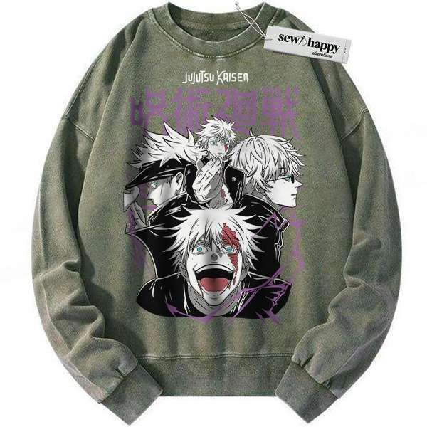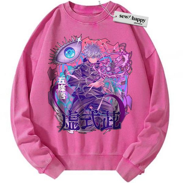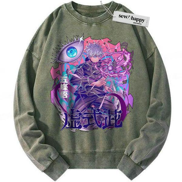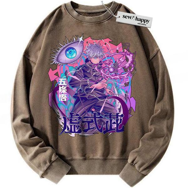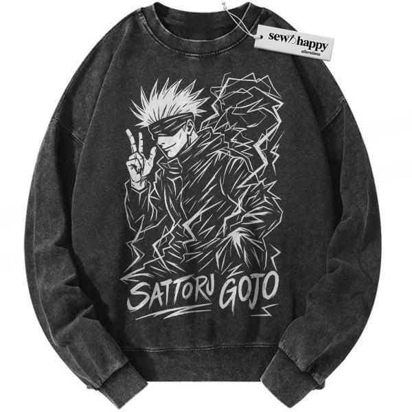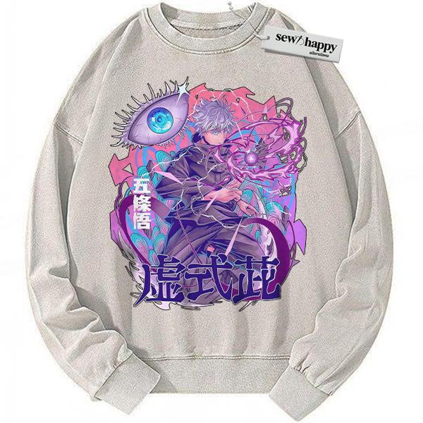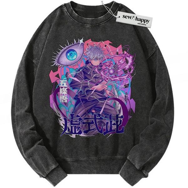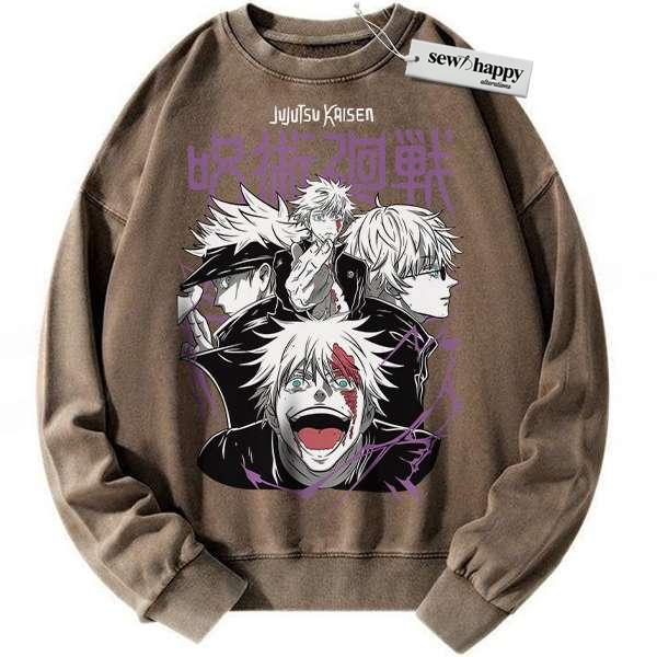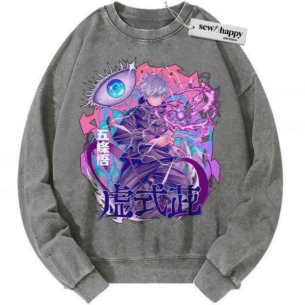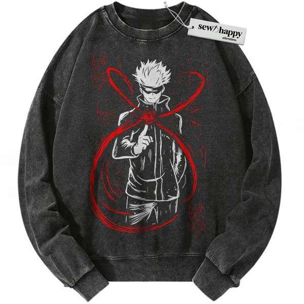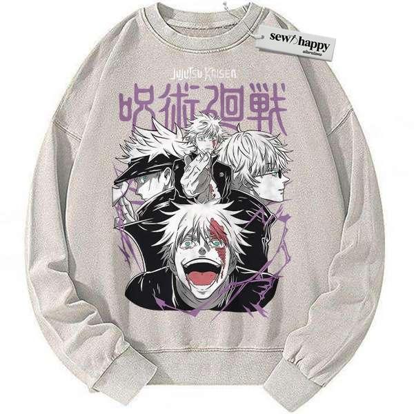 Wash Sweatshirt Satoru Gojo Sweatshirt, Jujutsu Kaisen Sweatshirt, Anime Sweatshirt, Vintage Sweatshirt