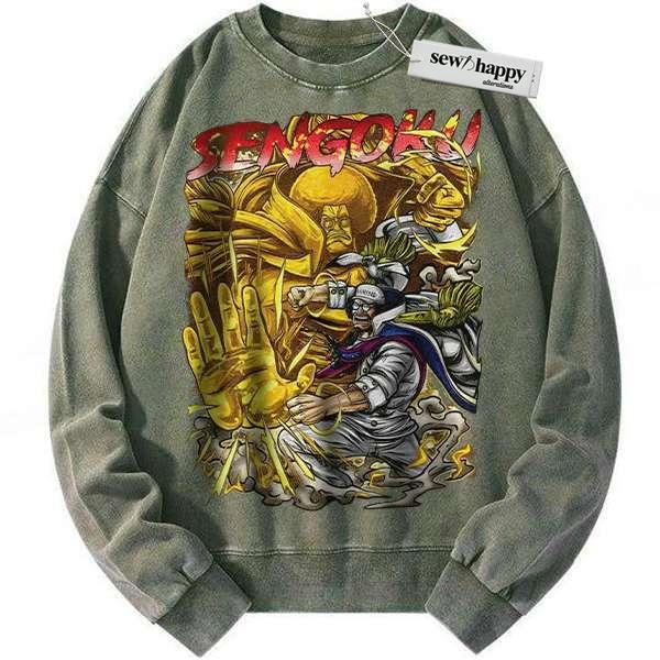 Wash Sweatshirt Sengoku Sweatshirt, One Piece Sweatshirt, Anime Sweatshirt, Vintage Sweatshirt