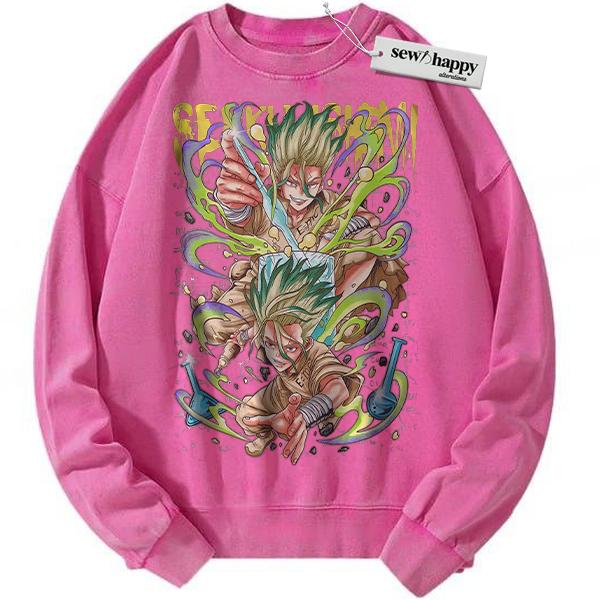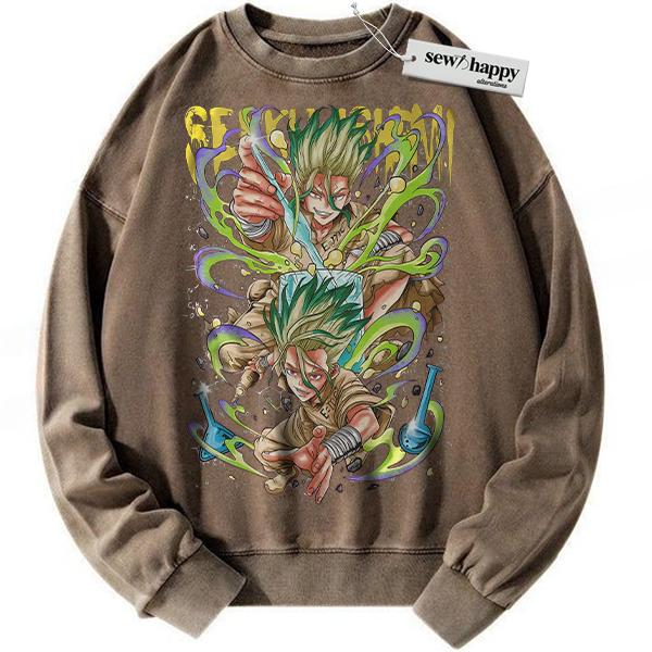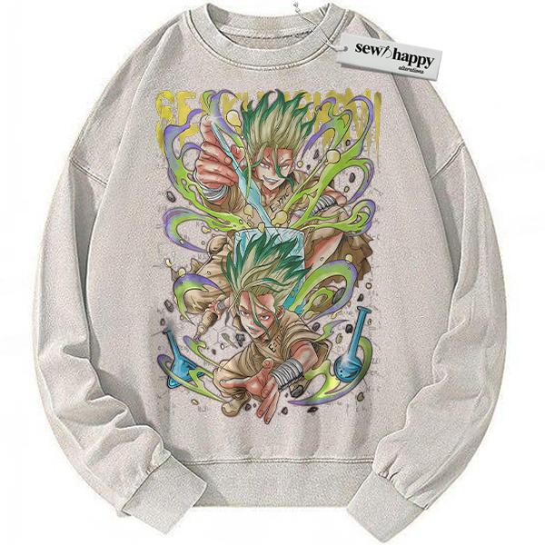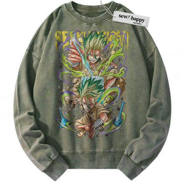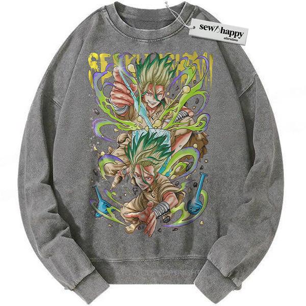 Wash Sweatshirt Senku Ishigami Sweatshirt, Dr. Stone Sweatshirt, Anime Sweatshirt, Vintage Sweatshirt