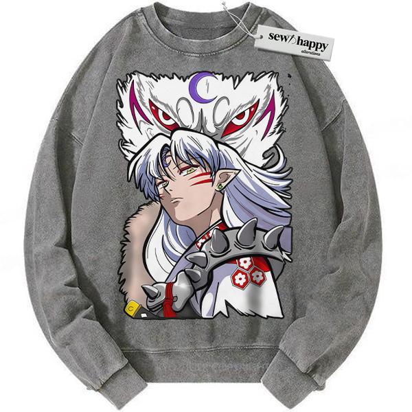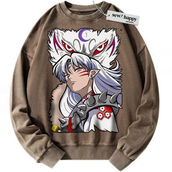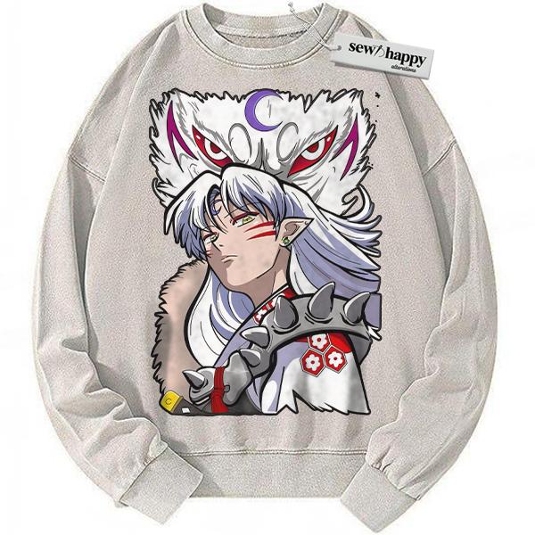 Wash Sweatshirt Sesshomaru Sweatshirt, Inuyasha Sweatshirt, Anime Sweatshirt, Vintage Sweatshirt