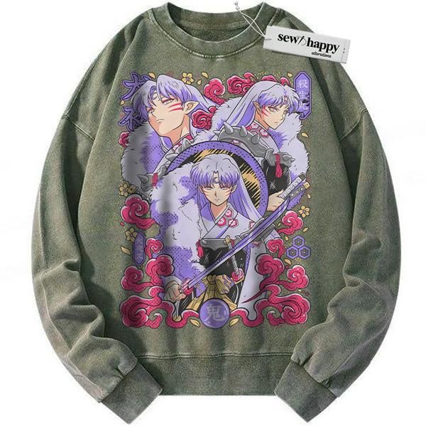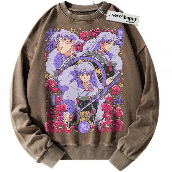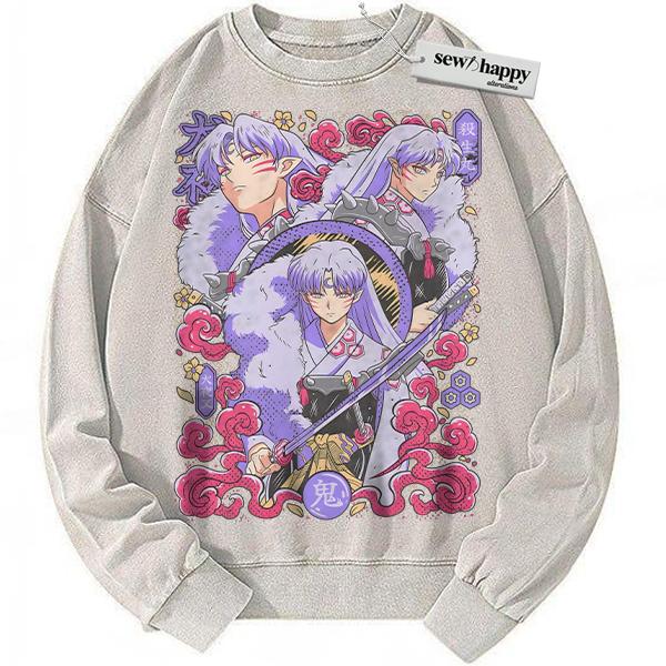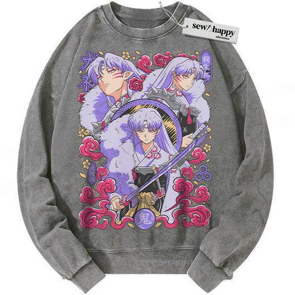 Wash Sweatshirt Sesshomaru Sweatshirt, Inuyasha Sweatshirt, Anime Sweatshirt, Vintage Sweatshirt