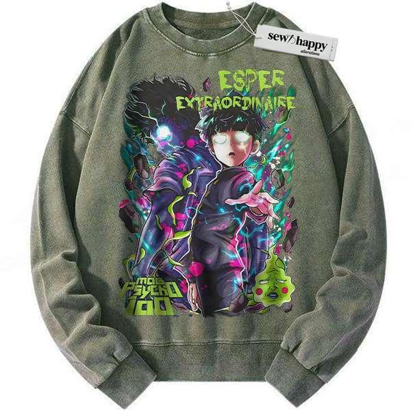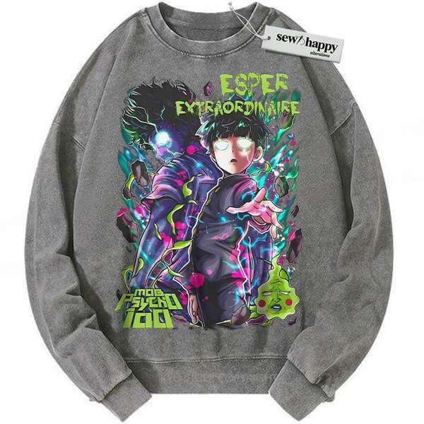 Wash Sweatshirt Shigeo Kageyama Sweatshirt, Mob Psycho 100 Sweatshirt, Anime Sweatshirt, Vintage Sweatshirt