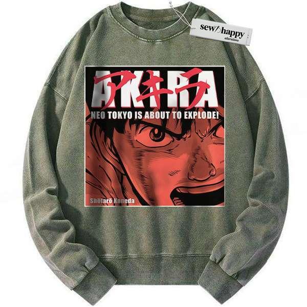 Wash Sweatshirt Shotaro Kaneda Sweatshirt, Akira Sweatshirt, Anime Sweatshirt, Vintage Sweater