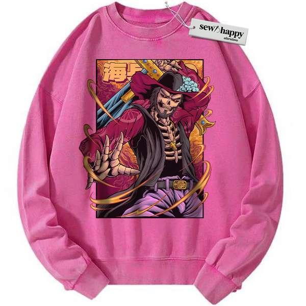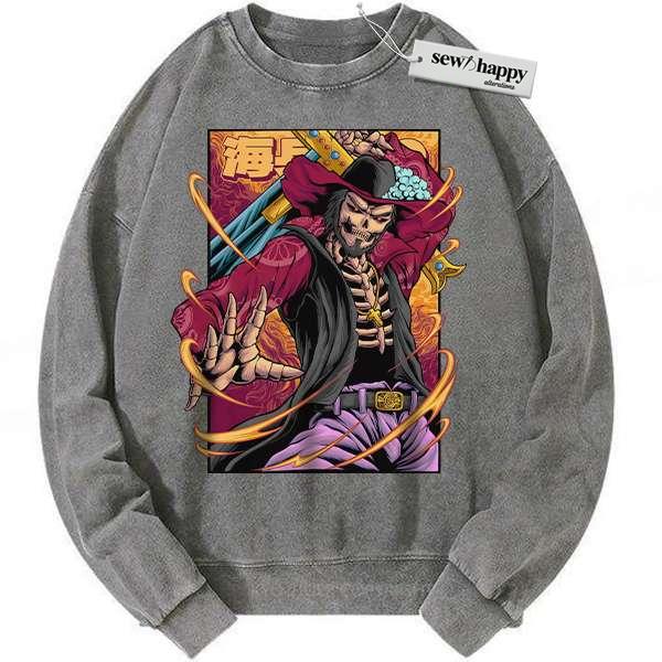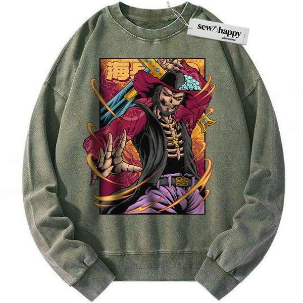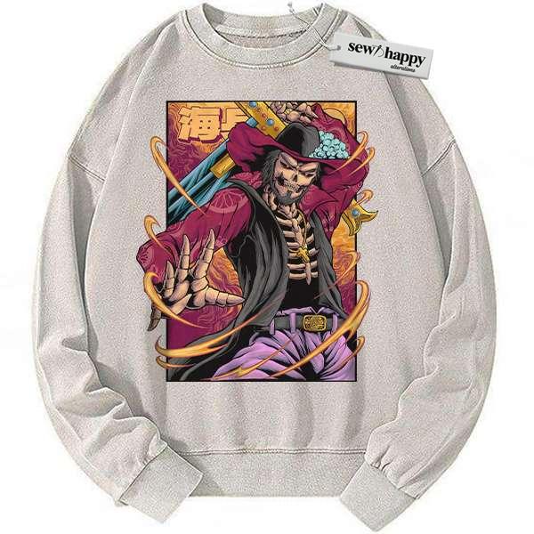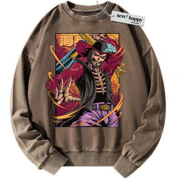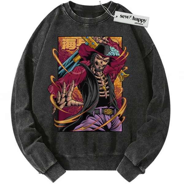 Wash Sweatshirt Skeleton Dracule Mihawk Sweatshirt, One Piece Sweatshirt, Anime Sweatshirt, Vintage Sweater