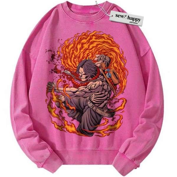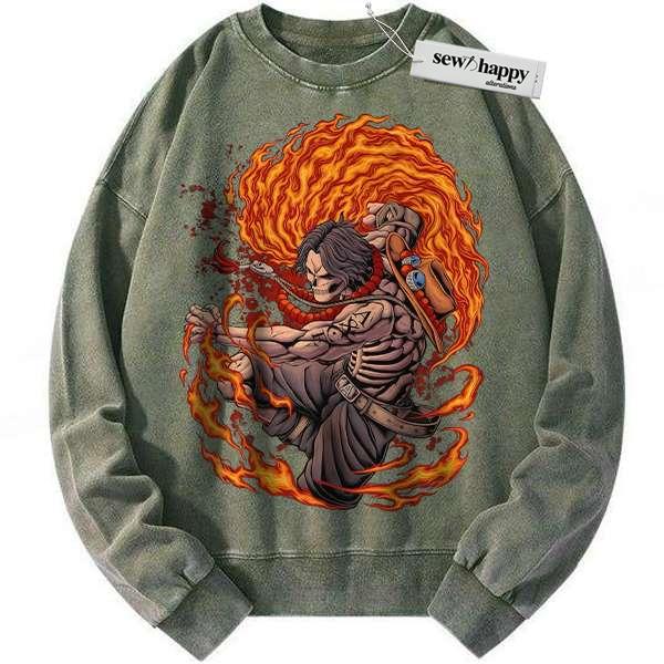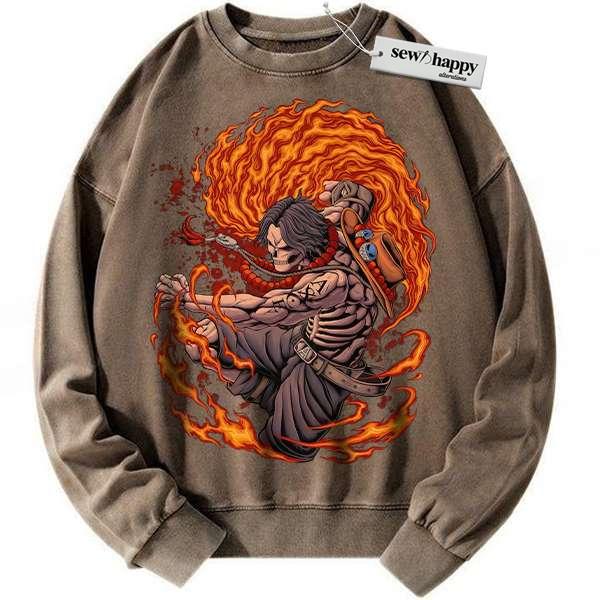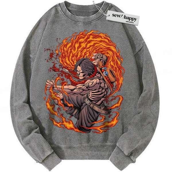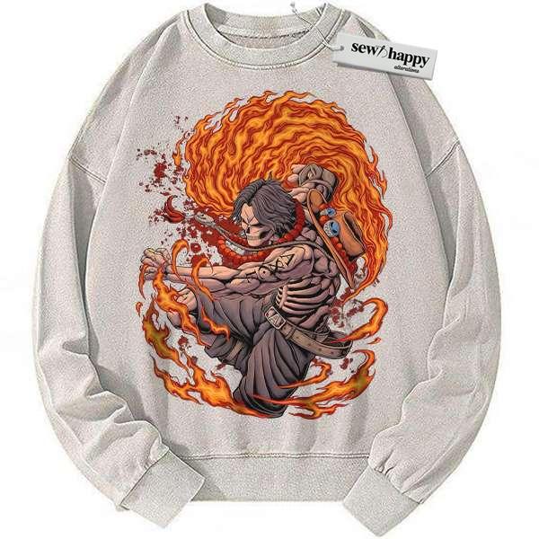 Wash Sweatshirt Skeleton Portgas D Ace Sweatshirt, One Piece Sweatshirt, Anime Sweatshirt, Vintage Sweater