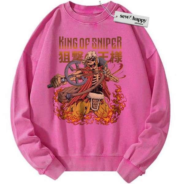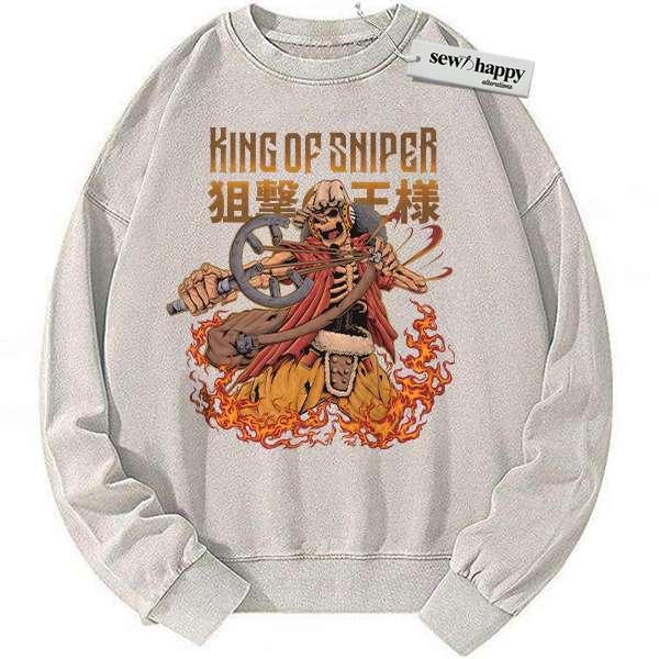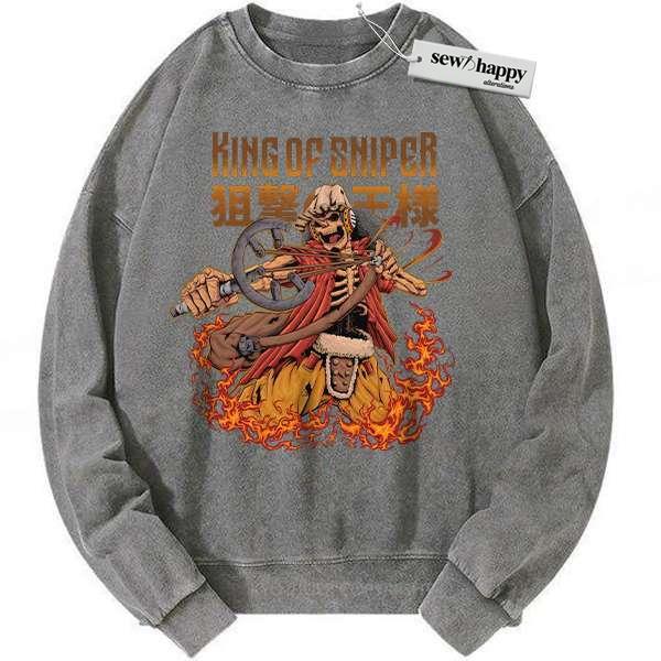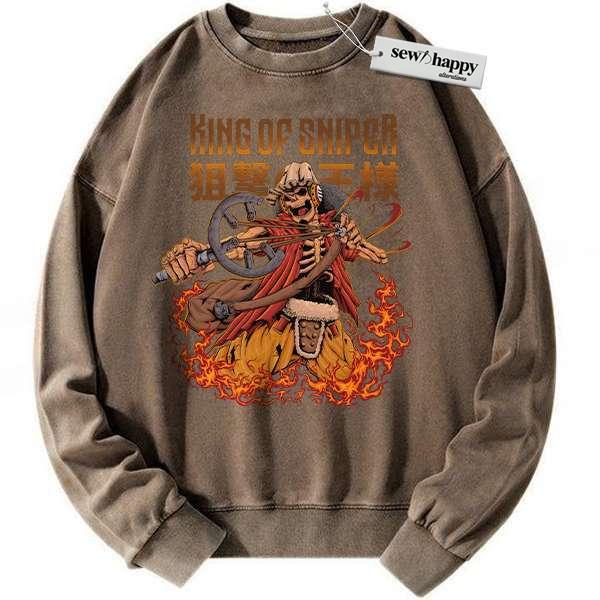 Wash Sweatshirt Skeleton Usopp Sweatshirt, One Piece Sweatshirt, Anime Sweatshirt, Vintage Sweatshirt