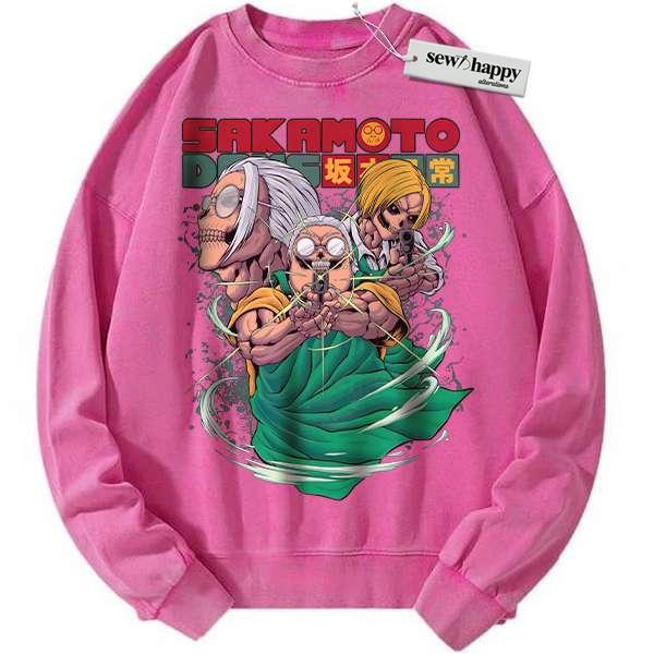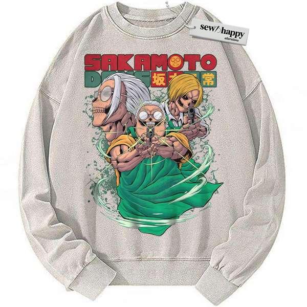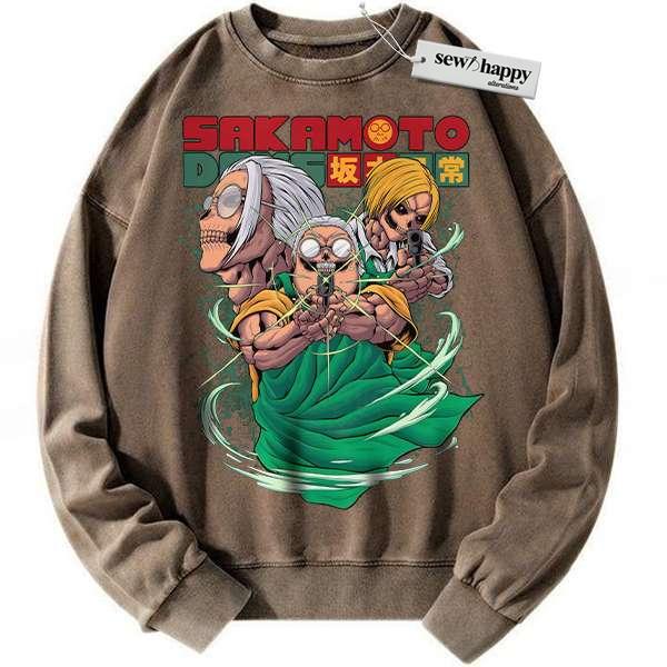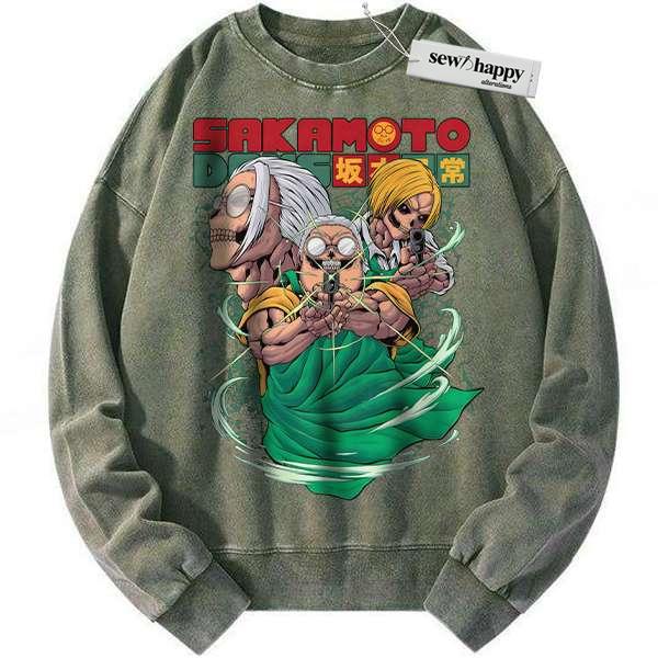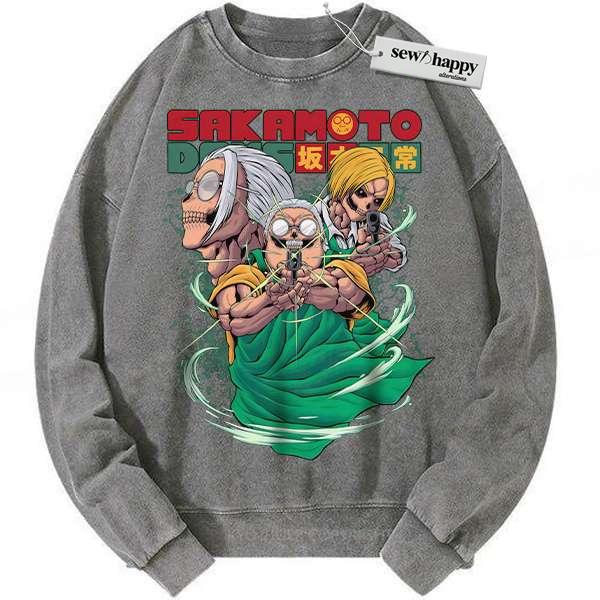 Wash Sweatshirt Skull Taro Sakamoto Sweatshirt, Sakamoto Days Sweatshirt, Anime Sweatshirt, Vintage Sweatshirt