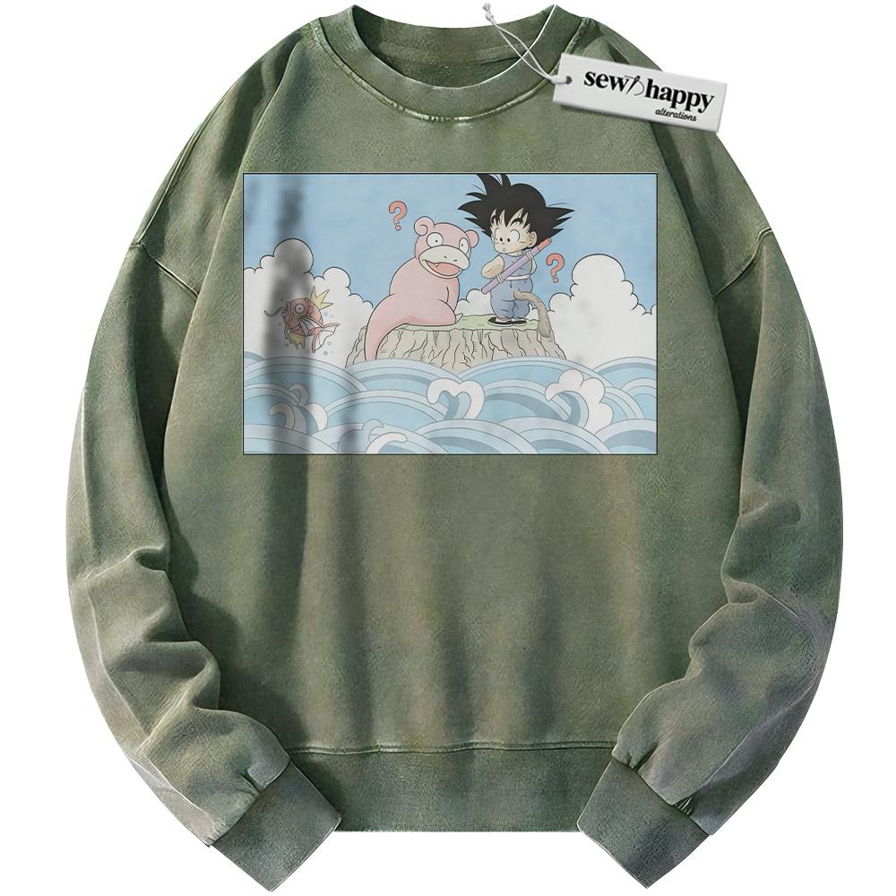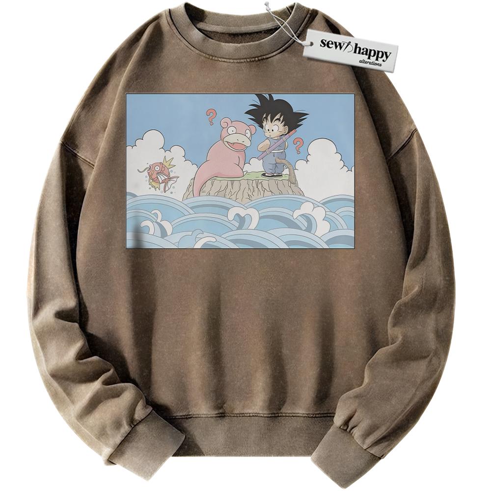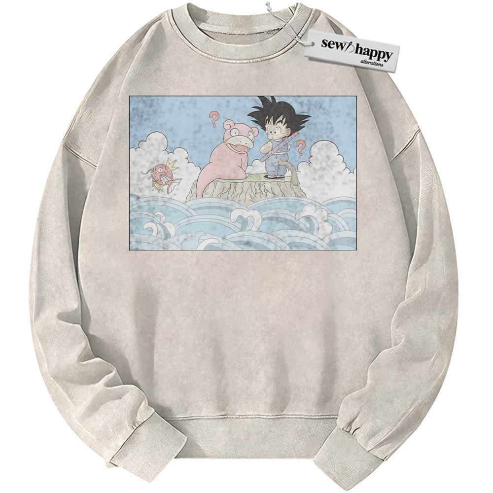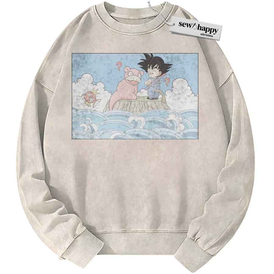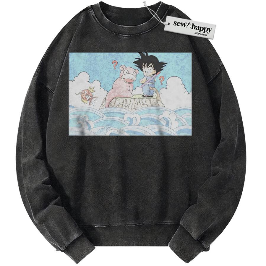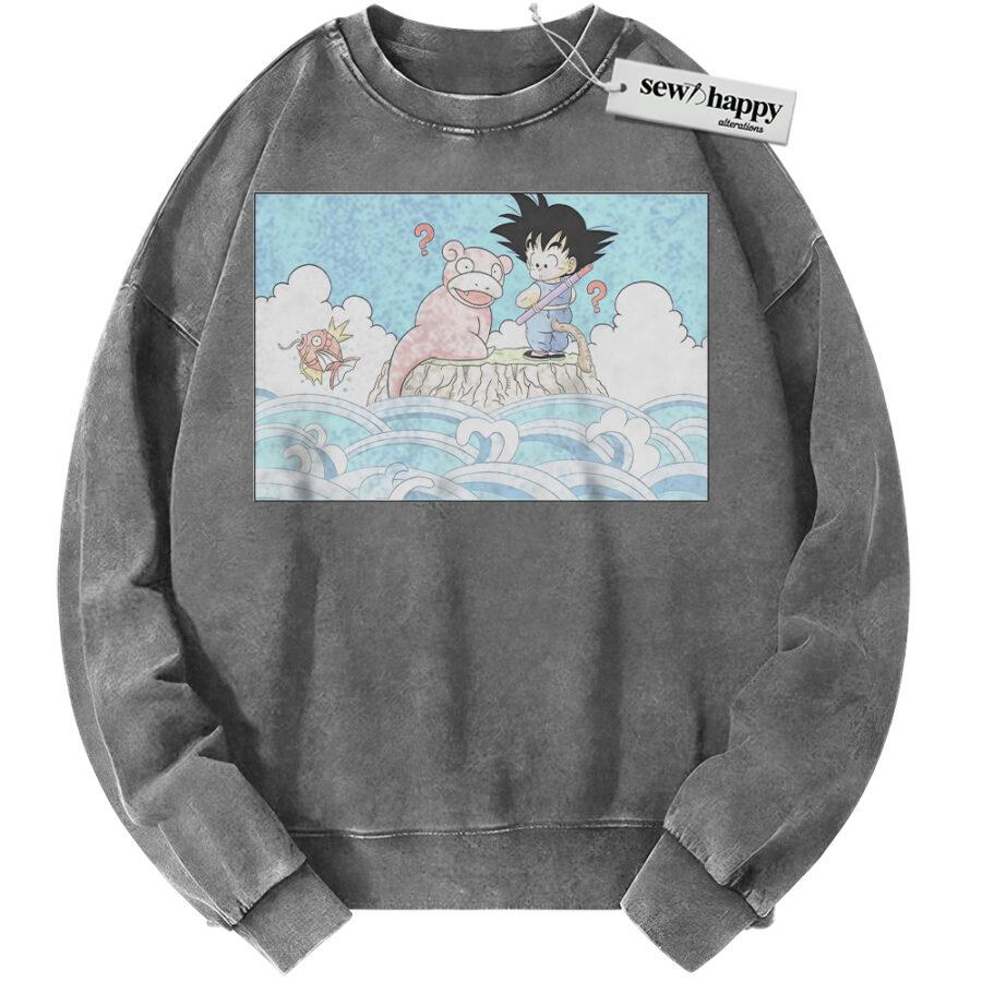 Wash Sweatshirt Slowpoke Sweatshirt, Magikarp and Son Goku Sweatshirt, Dragon Ball Sweatshirt, Pokemon Sweatshirt, Anime Sweatshirt, Vintage Sweater
