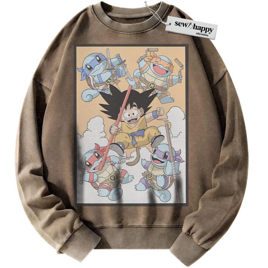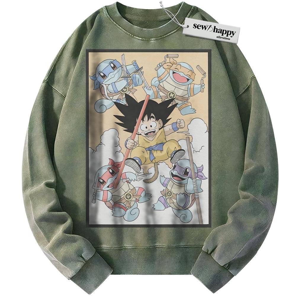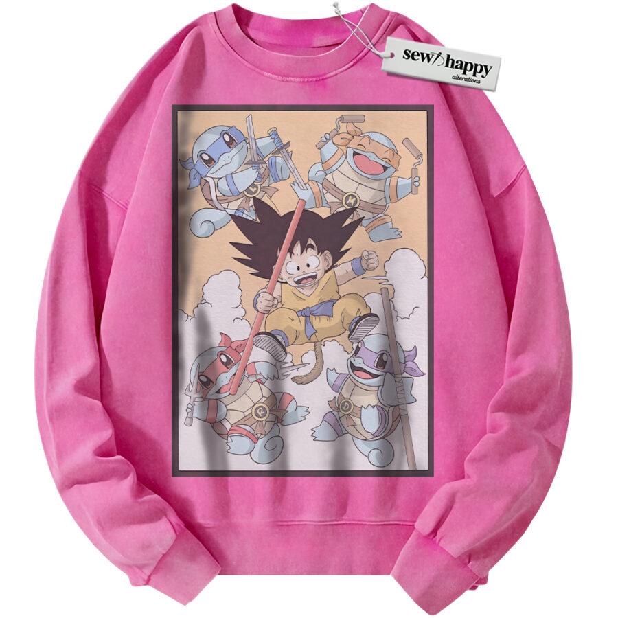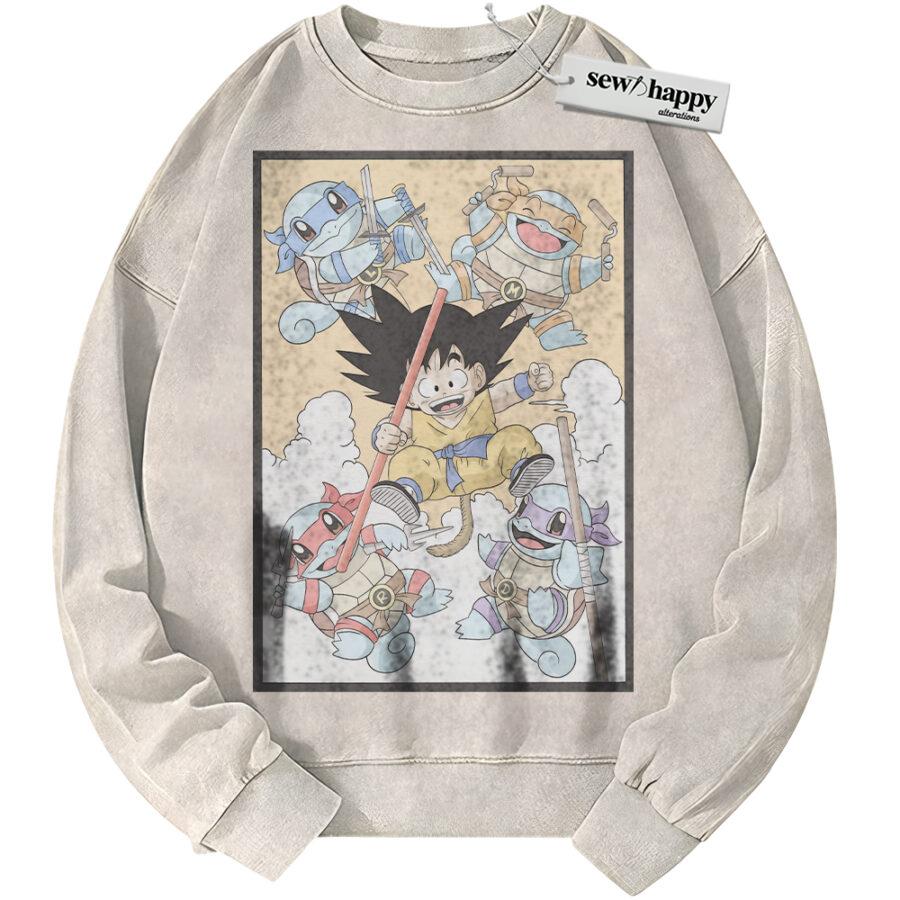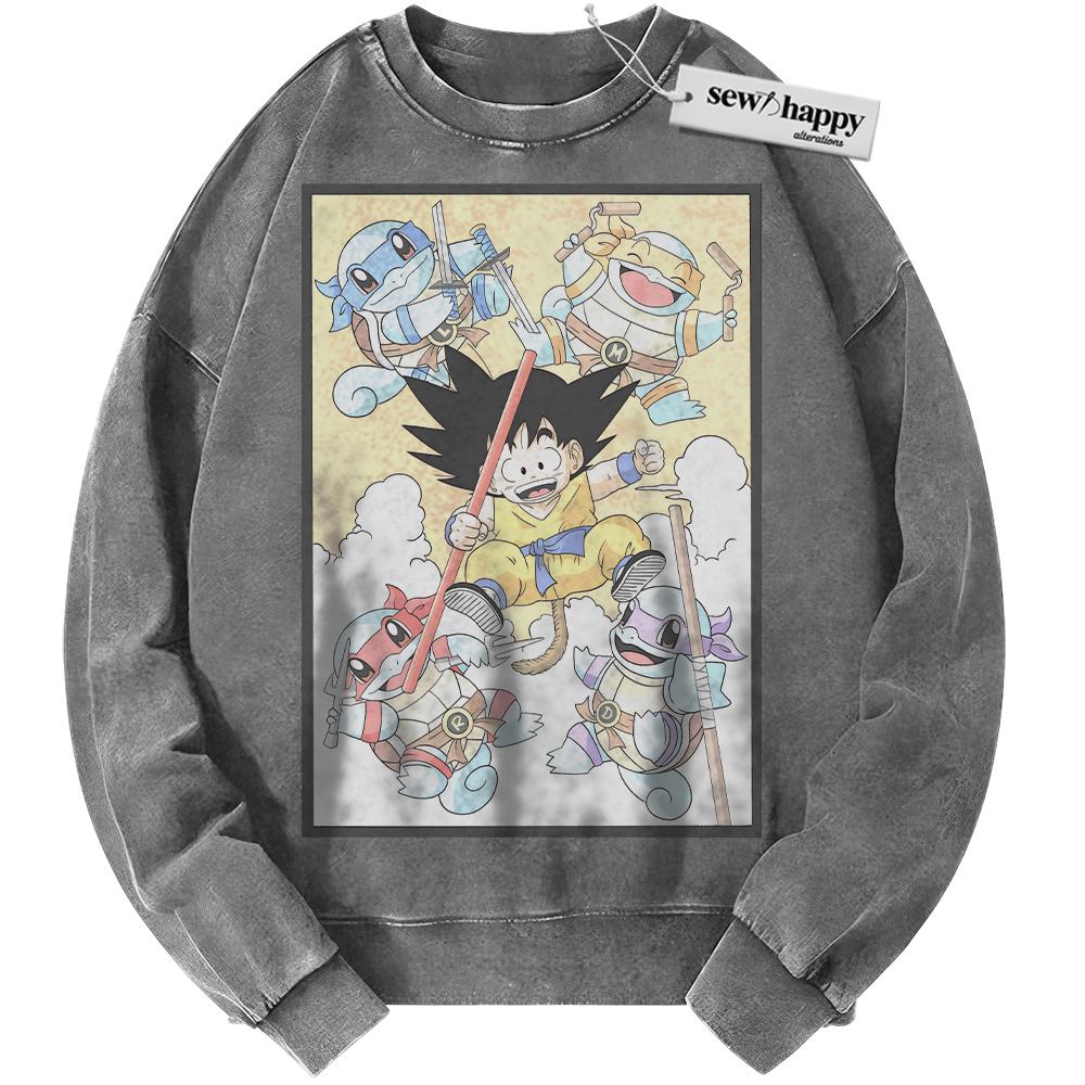 Wash Sweatshirt Son Goku Sweatshirt, Squirtle Sweatshirt, Dragon Ball x Pokemon Sweatshirt, Anime Sweatshirt, Vintage Sweater