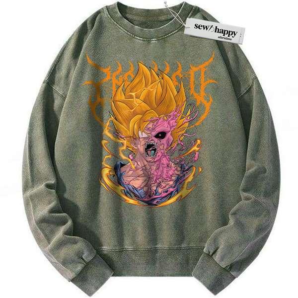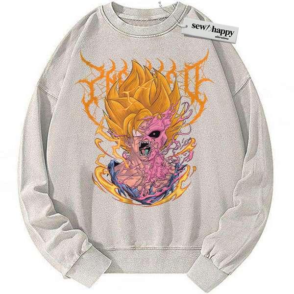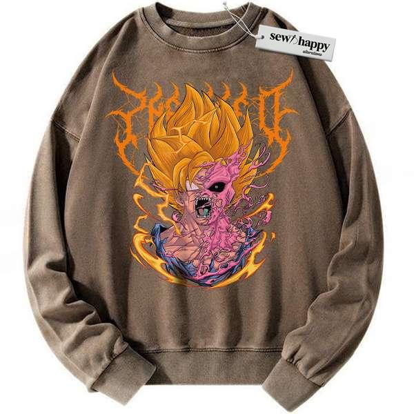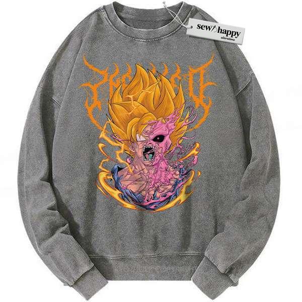 Wash Sweatshirt Son Goku vs Majin Buu Sweatshirt, Dragon Ball Sweatshirt, Anime Sweatshirt, Vintage Sweatshirt