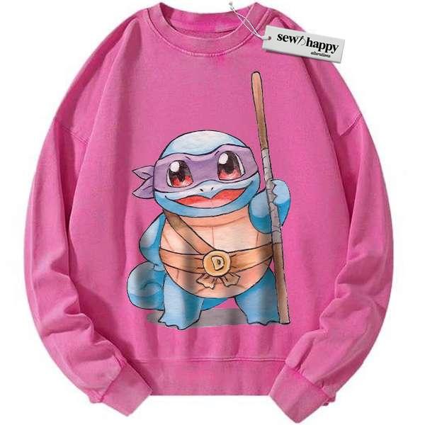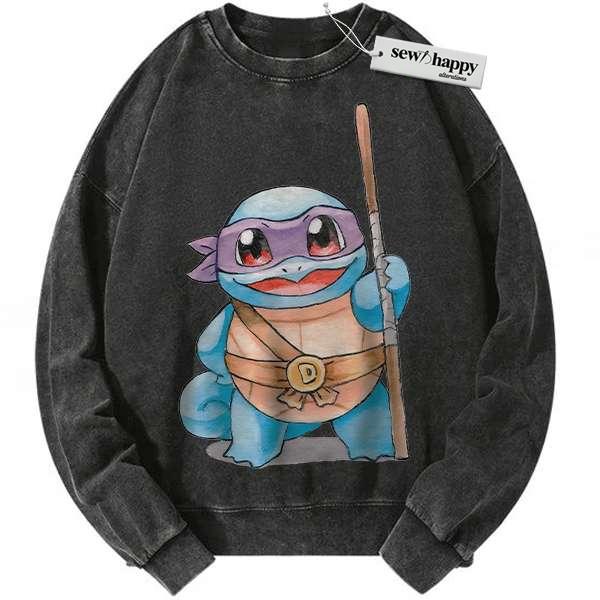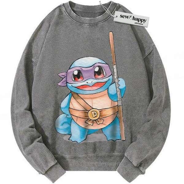 Wash Sweatshirt Squirtle x Donatello Sweatshirt, Pokemon Sweatshirt, Anime Sweatshirt, Vintage Sweater