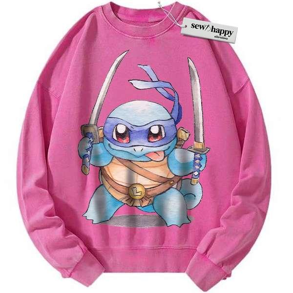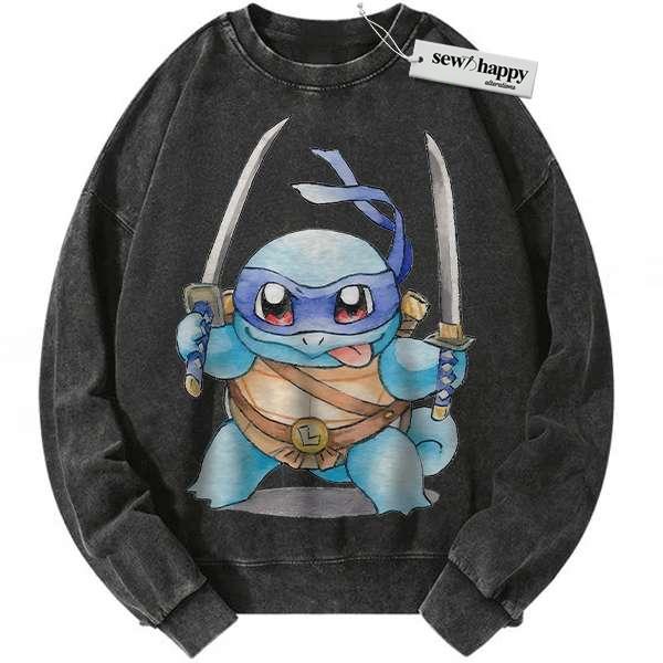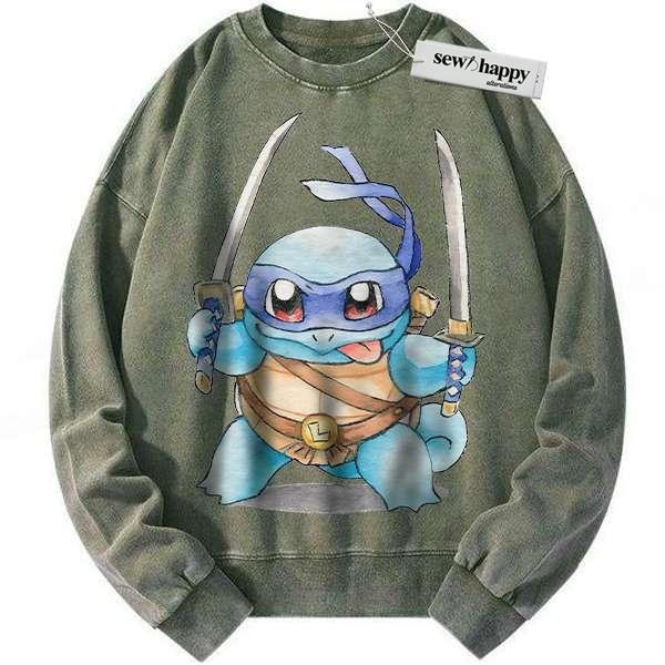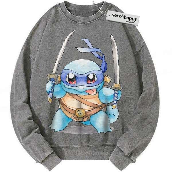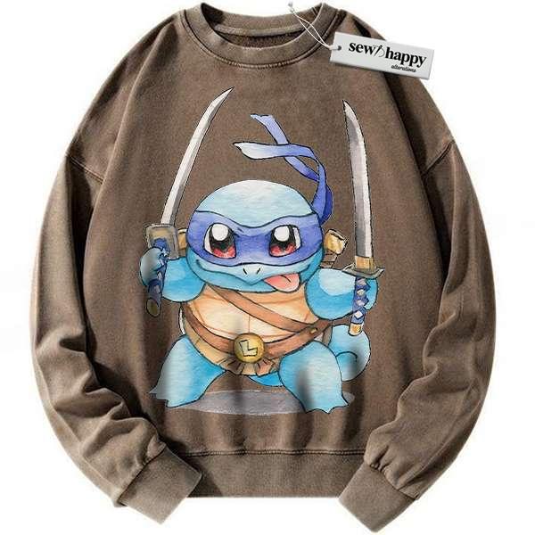 Wash Sweatshirt Squirtle x Leonardo Sweatshirt, Pokemon Sweatshirt, Anime Sweatshirt, Vintage Sweater