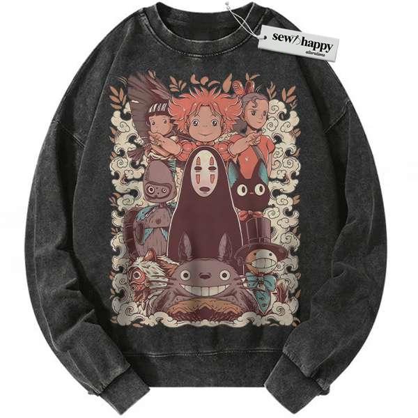 Wash Sweatshirt Studio Ghibli Sweatshirt, Anime Sweatshirt, Vintage Sweatshirt