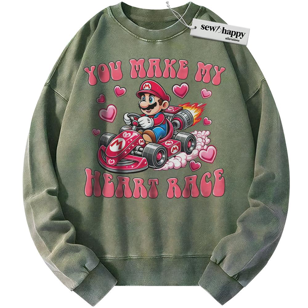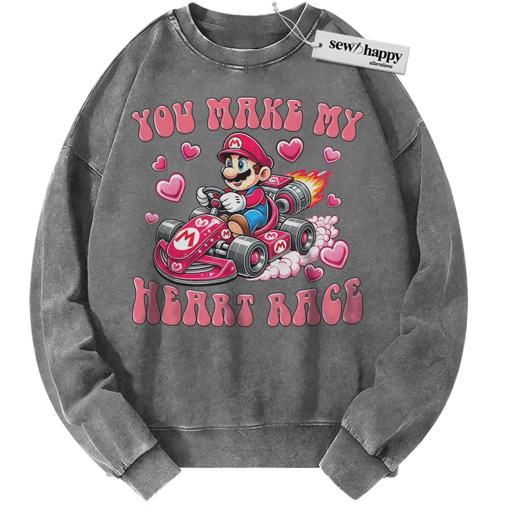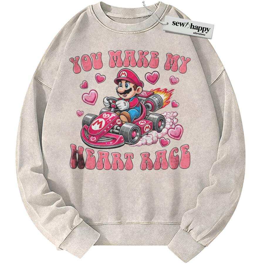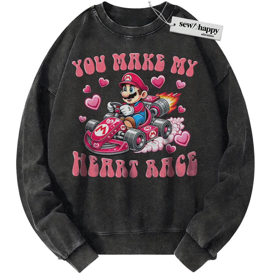 Wash Sweatshirt Super Mario Sweatshirt, Valentine’s Day Sweatshirt, Game Sweatshirt, Vintage Sweater