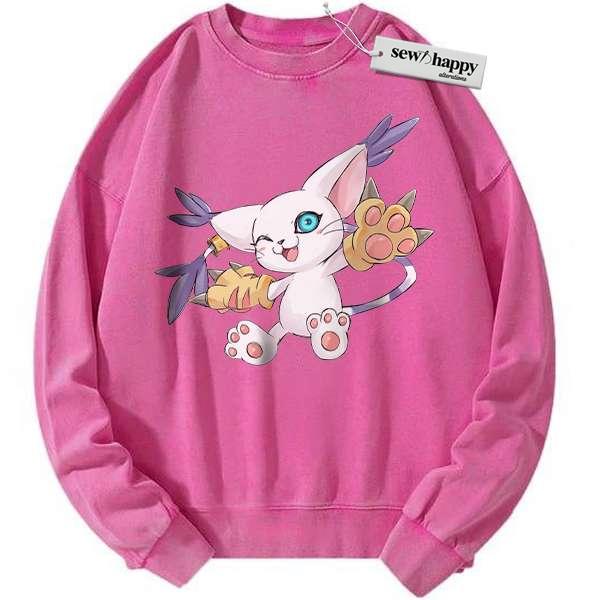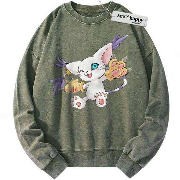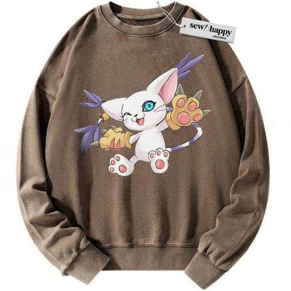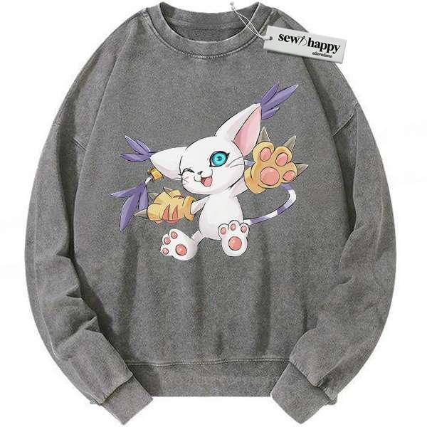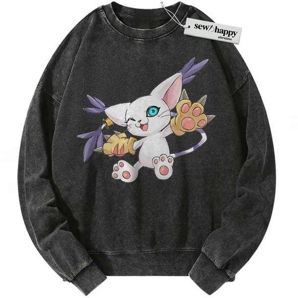 Wash Sweatshirt Tailmon Sweatshirt, Digimon Adventure Sweatshirt, Anime Sweatshirt, Vintage Sweatshirt