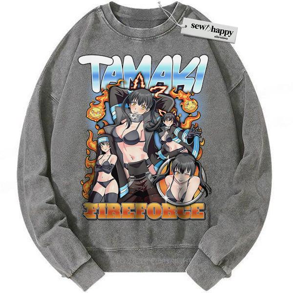 Wash Sweatshirt Tamaki Kotatsu Sweatshirt, Fire Force Sweatshirt, Anime Sweatshirt, Vintage Sweatshirt
