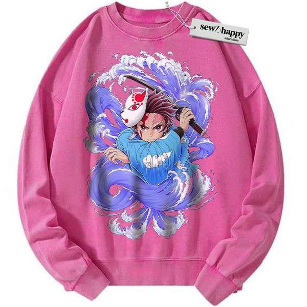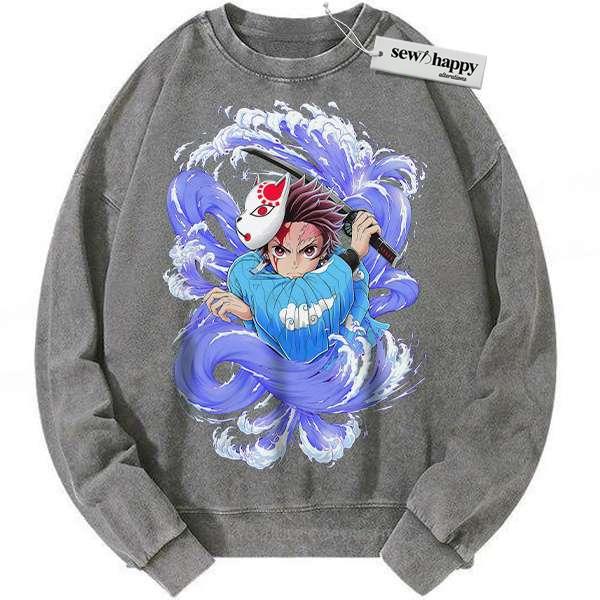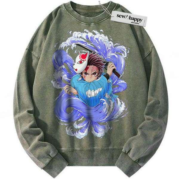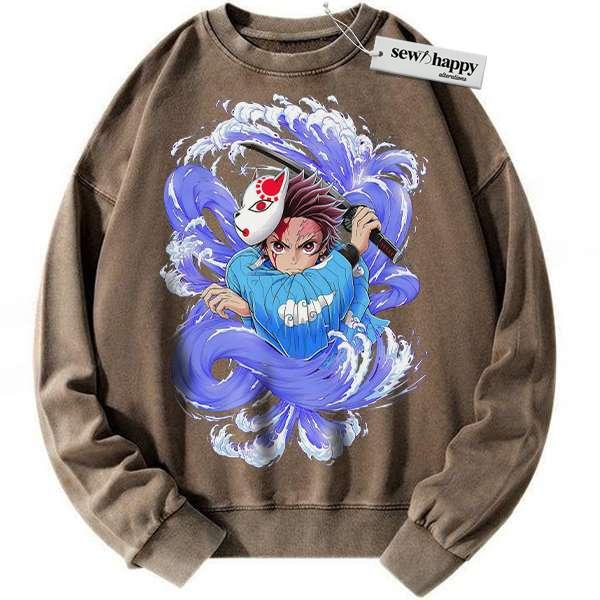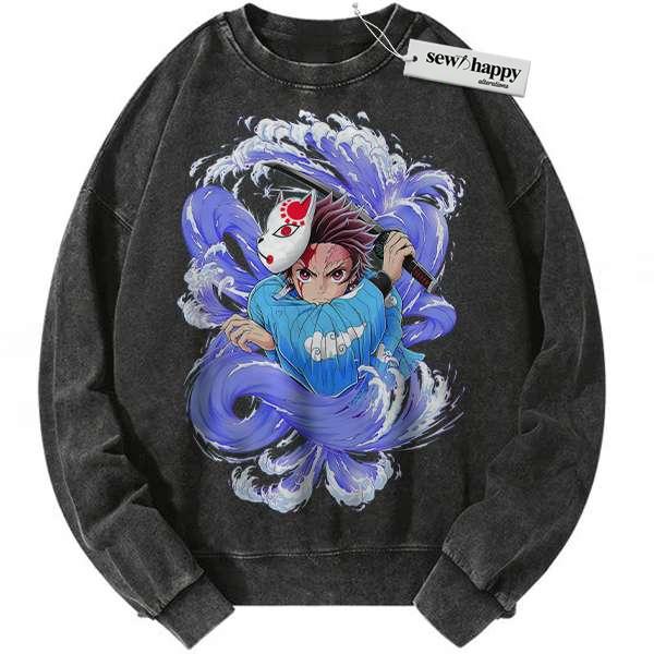 Wash Sweatshirt Tanjiro Kamado Sweatshirt, Demon Slayer Sweatshirt, Anime Sweatshirt, Vintage Sweater
