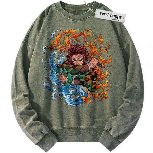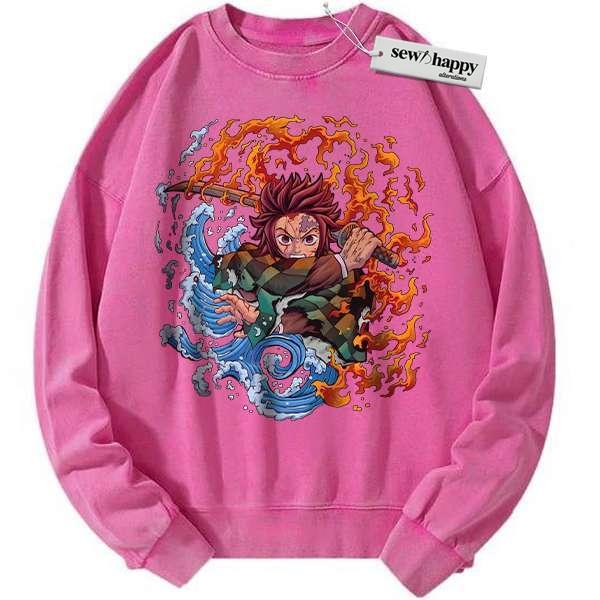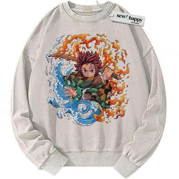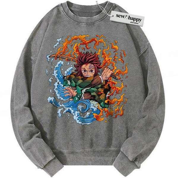 Wash Sweatshirt Tanjiro Kamado Sweatshirt, Demon Slayer Sweatshirt, Anime Sweatshirt, Vintage Sweatshirt