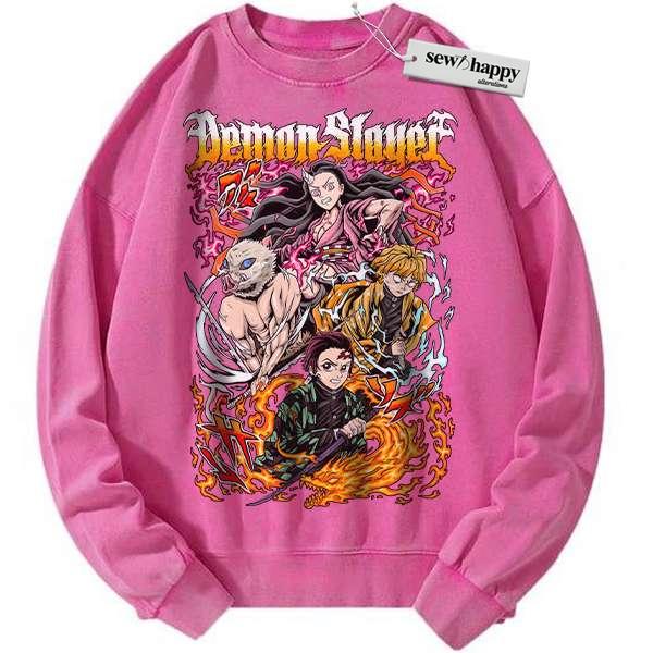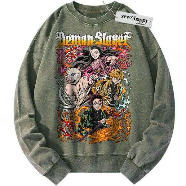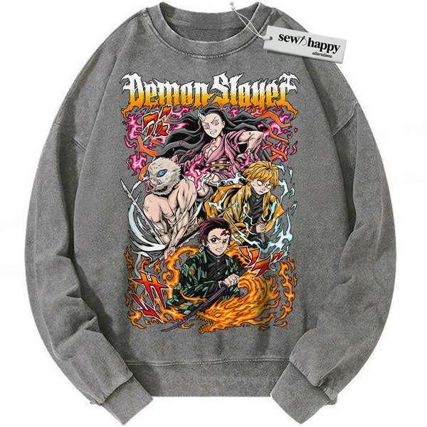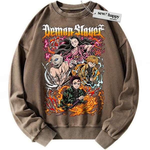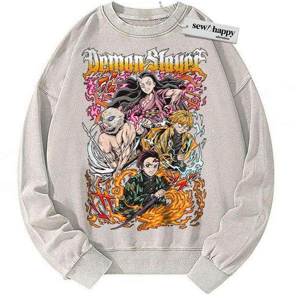 Wash Sweatshirt Tanjiro Sweatshirt, Nezuko Sweatshirt, Inosuke Sweatshirt, Zenitsu Sweatshirt, Demon Slayer Sweatshirt, Anime Sweatshirt, Vintage Sweater