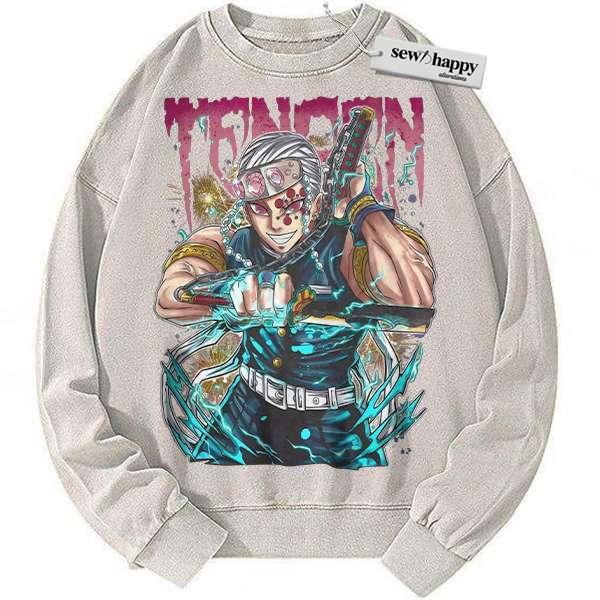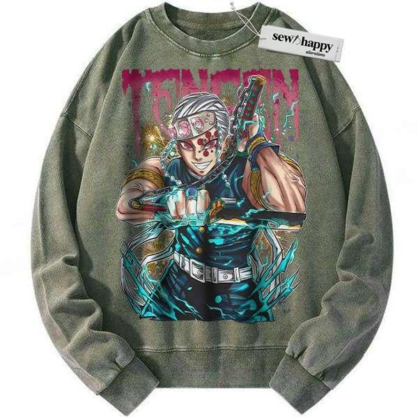 Wash Sweatshirt Tengen Uzui Sweatshirt, Demon Slayer Sweatshirt, Anime Sweatshirt, Vintage Sweater