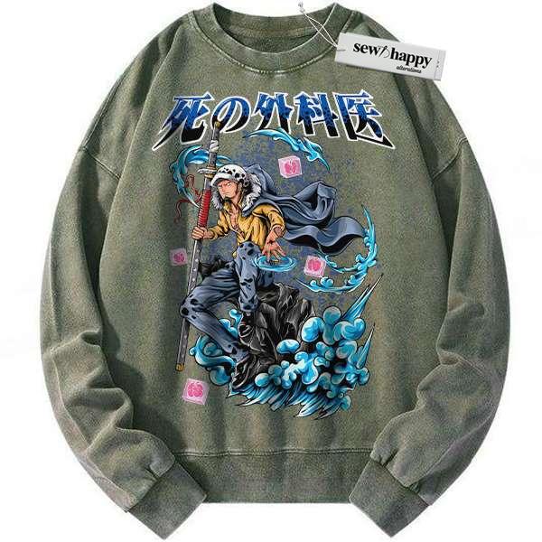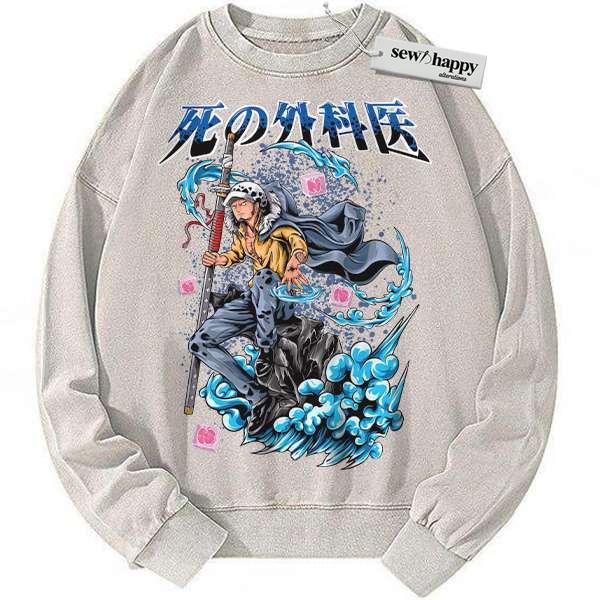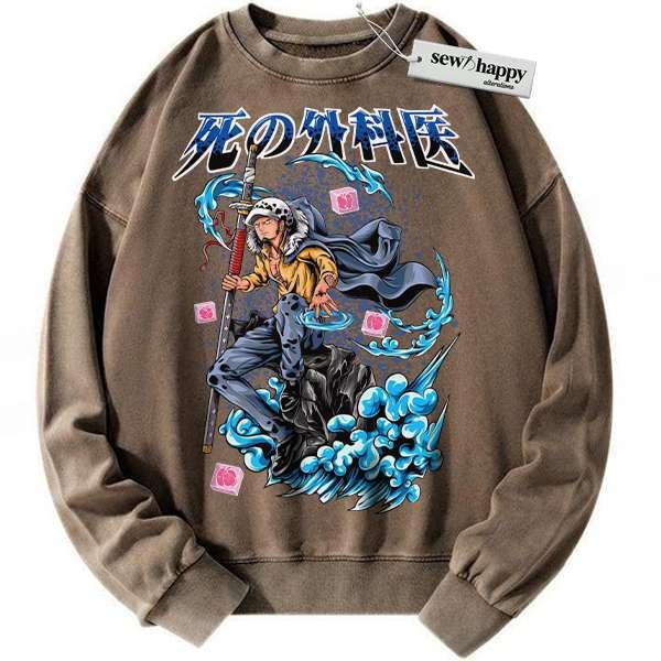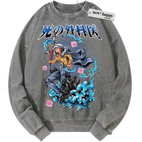 Wash Sweatshirt Trafalgar D Water Law Sweatshirt, One Piece Sweatshirt, Anime Sweatshirt, Vintage Sweatshirt