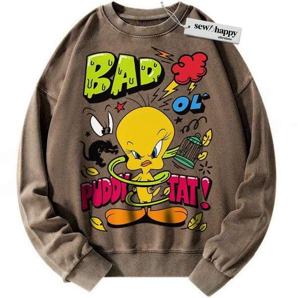 Wash Sweatshirt Tweety Sweatshirt, Looney Tunes Sweatshirt, Cartoon Sweatshirt, Vintage Sweater