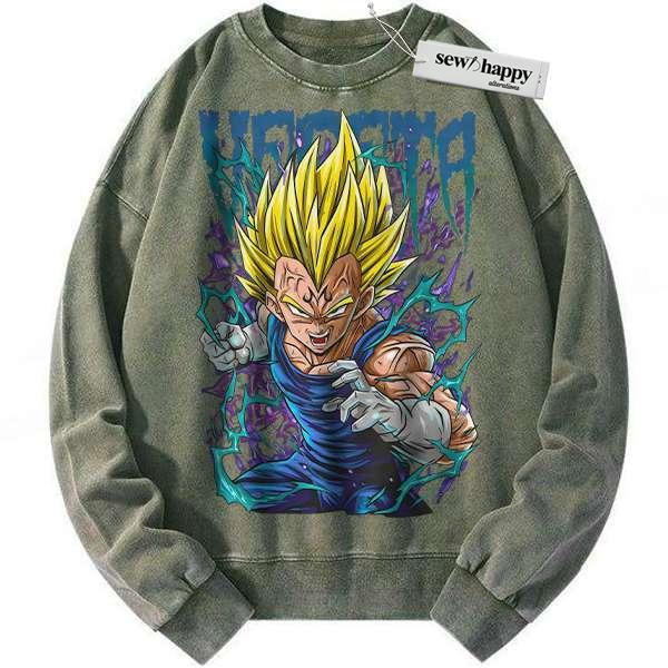 Wash Sweatshirt Vegeta Sweatshirt, Dragon Ball Sweatshirt, Anime Sweatshirt, Vintage Sweater