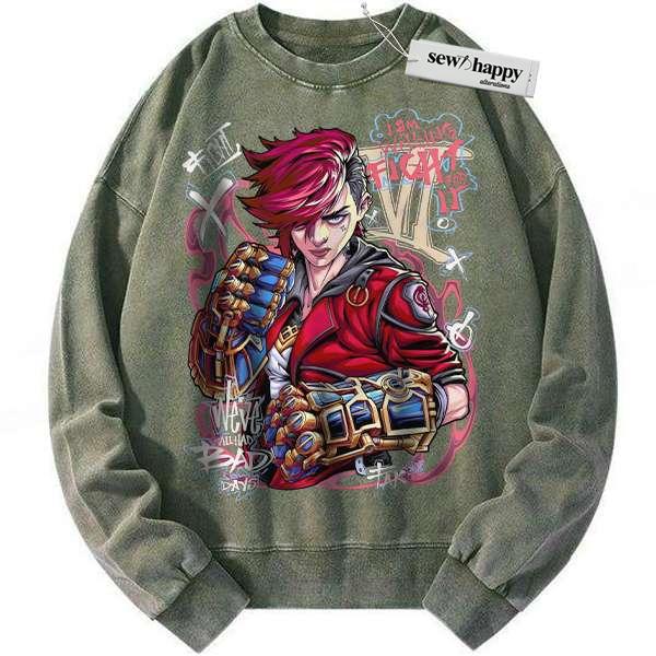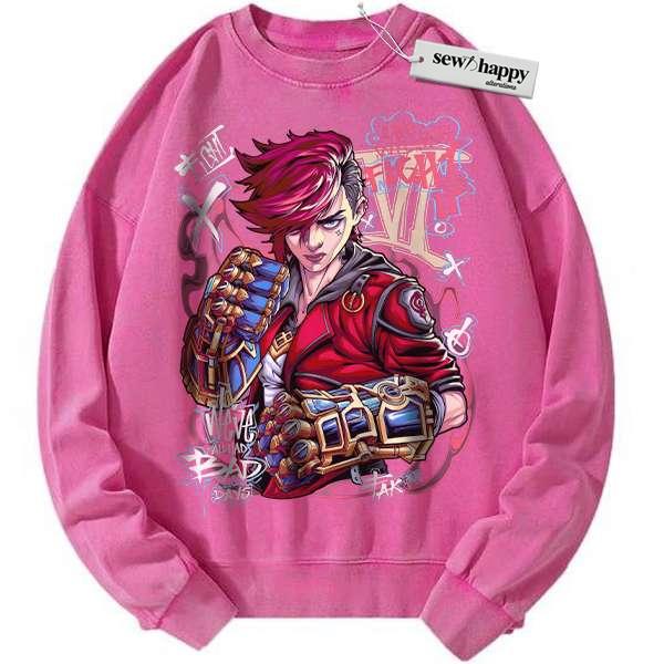 Wash Sweatshirt Vi – Arcane Sweatshirt, League of Legends Sweatshirt, Game Sweatshirt, Vintage Sweatshirt
