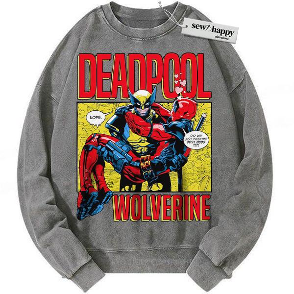 Wash Sweatshirt Wolverine Sweatshirt, Deadpool Sweatshirt, Marvel Comics Sweatshirt, Vintage Sweatshirt