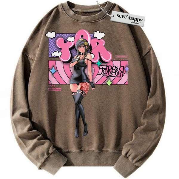 Wash Sweatshirt Yor Forger Sweatshirt, Spy x Family Sweatshirt, Anime Sweatshirt, Vintage Sweater