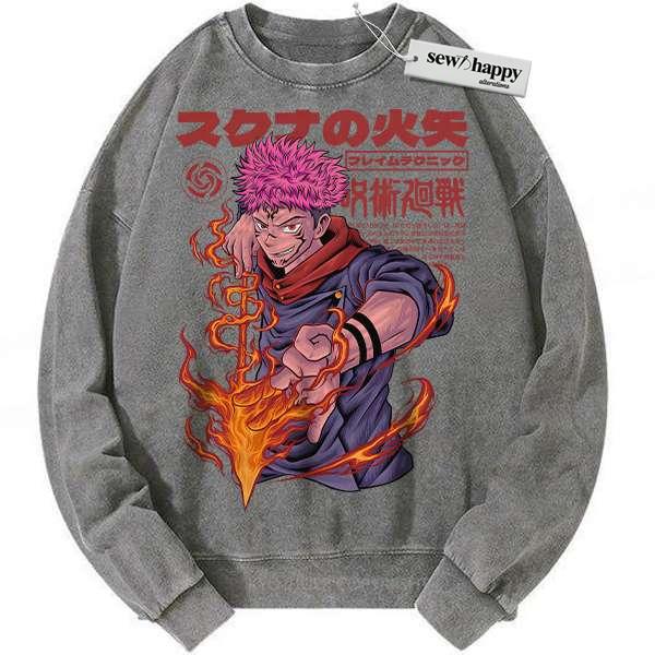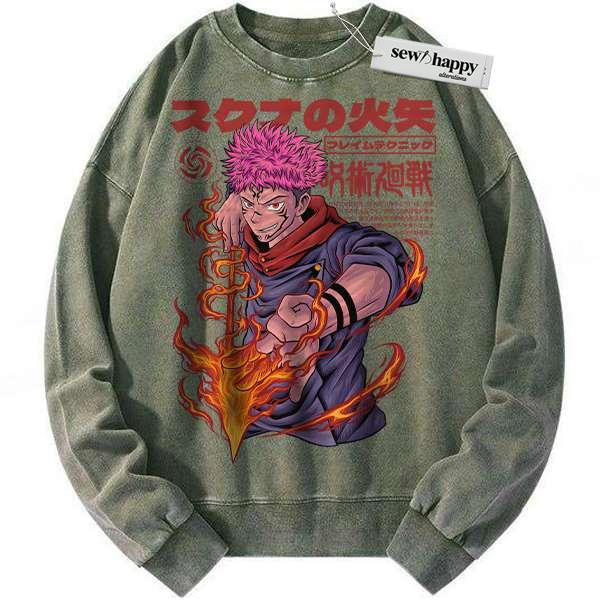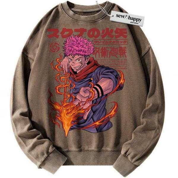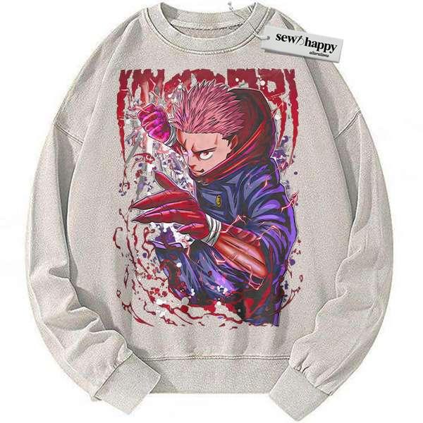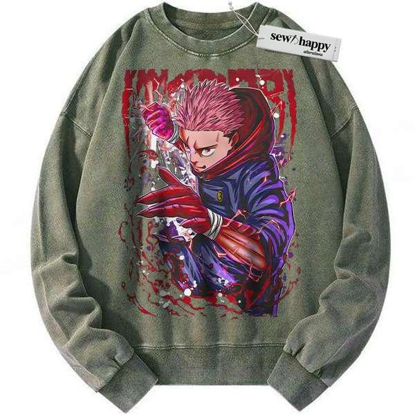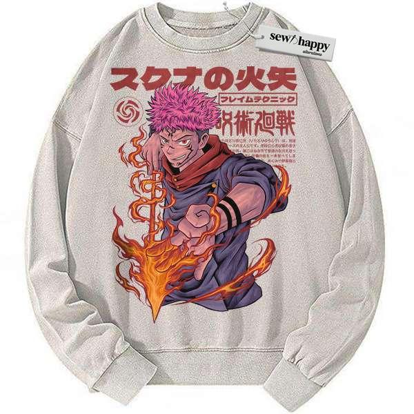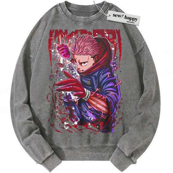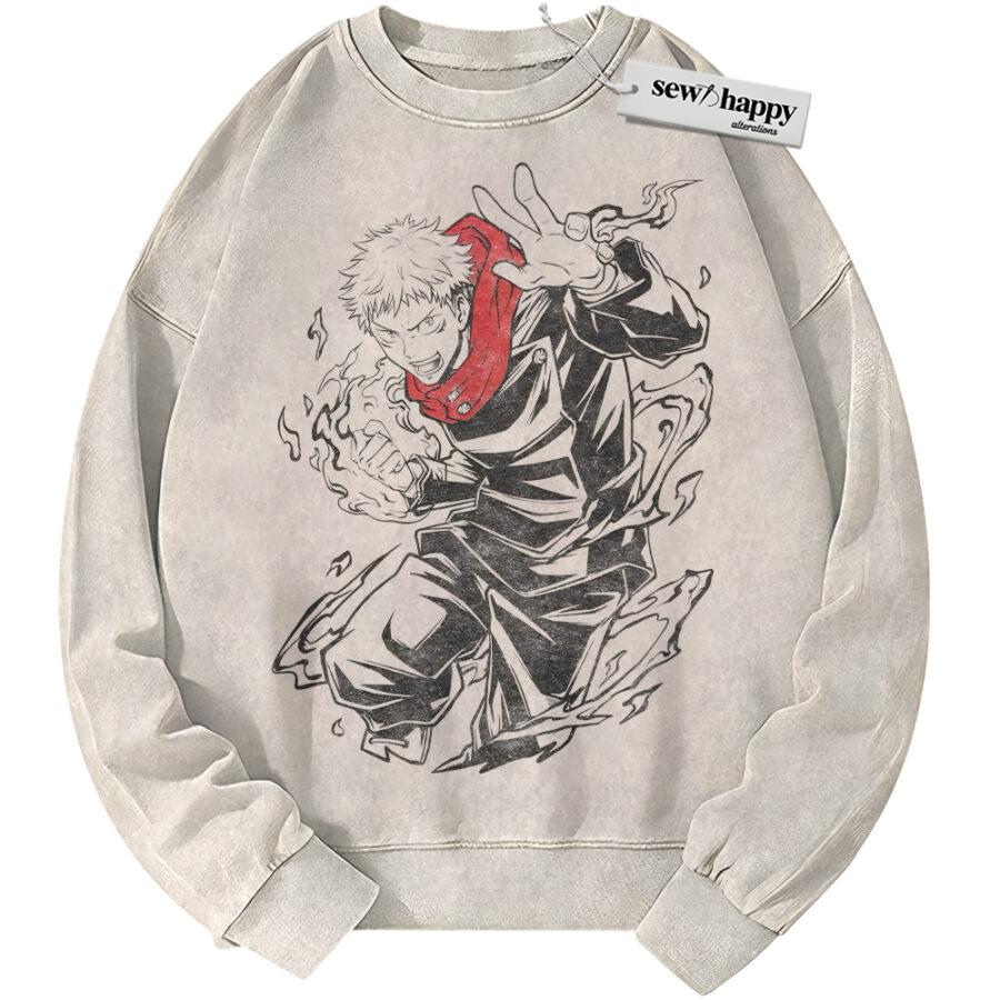 Wash Sweatshirt Yuji Itadori Sweatshirt, Jujutsu Kaisen Sweatshirt, Anime Sweatshirt, Vintage Sweater