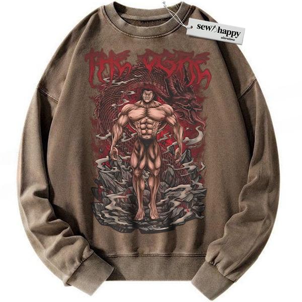 Wash Sweatshirt Yujiro Hanma Sweatshirt, Baki Sweatshirt, Anime Sweatshirt, Vintage Sweatshirt