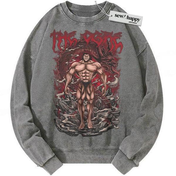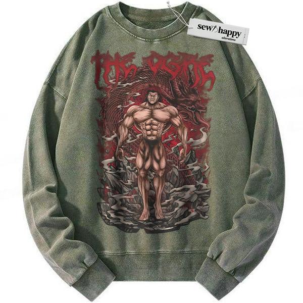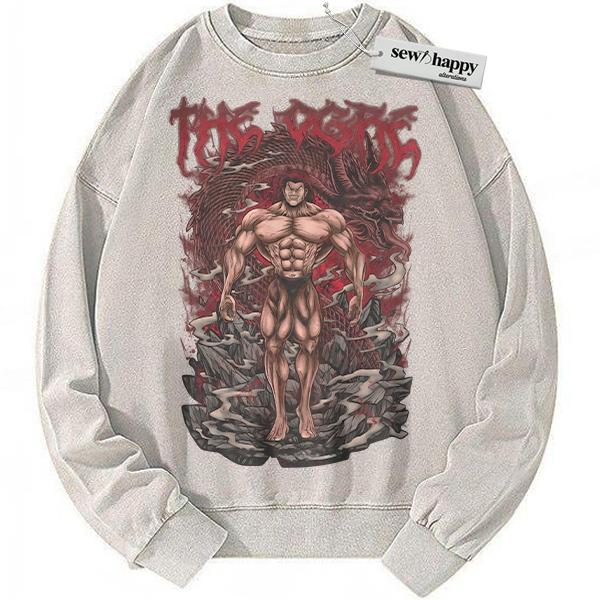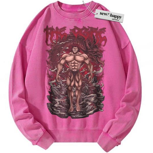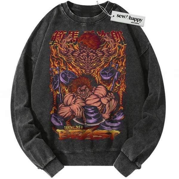 Wash Sweatshirt Yujiro Hanma Sweatshirt, Baki Sweatshirt, Anime Sweatshirt, Vintage Sweatshirt