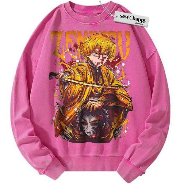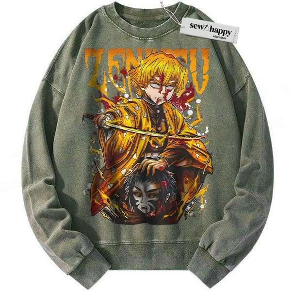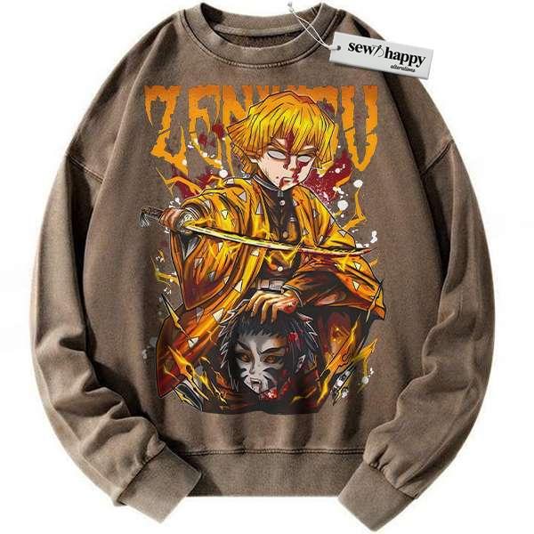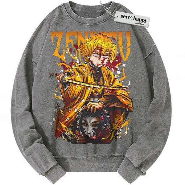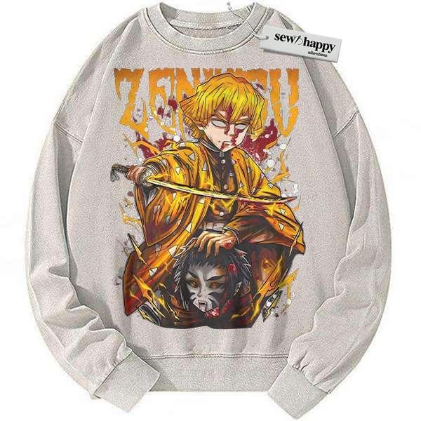 Wash Sweatshirt Zenitsu Agatsuma Sweatshirt, Demon Slayer Sweatshirt, Anime Sweatshirt, Vintage Sweater