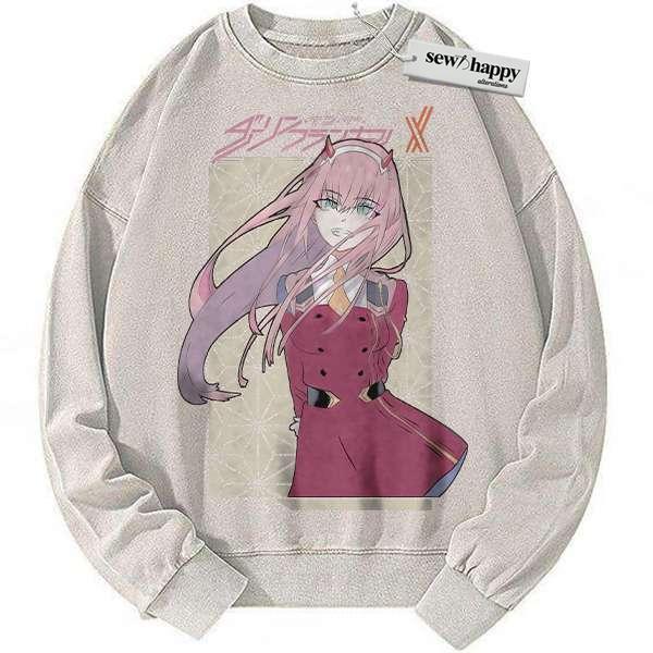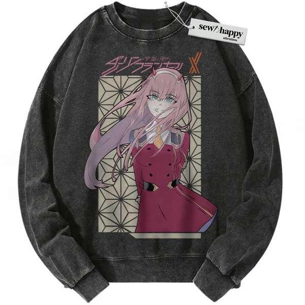 Wash Sweatshirt Zero Two Sweatshirt, Darling in the Franxx Sweatshirt, Anime Sweatshirt, Vintage Sweater
