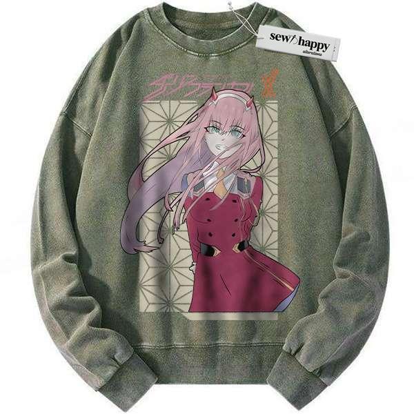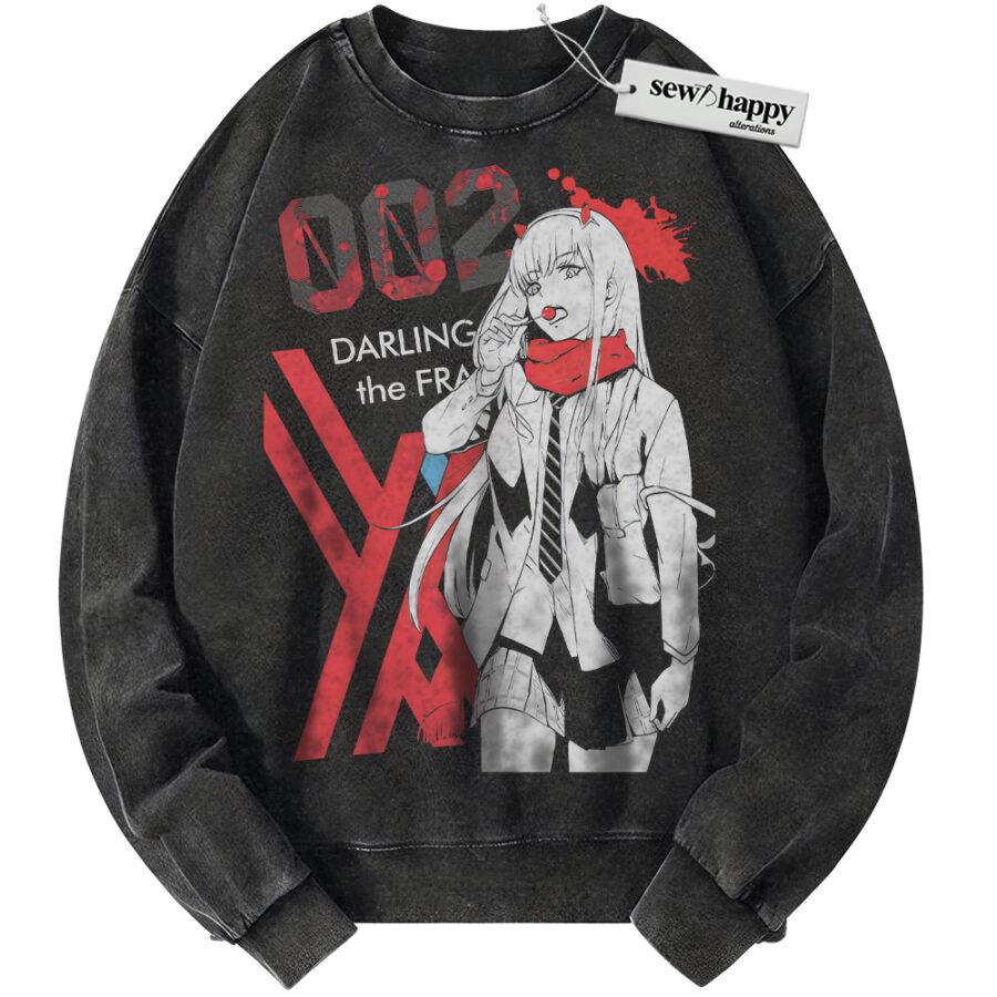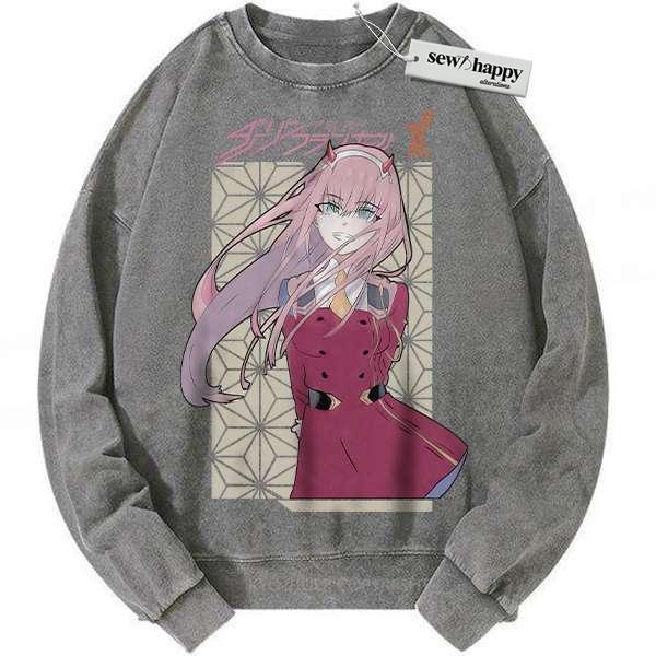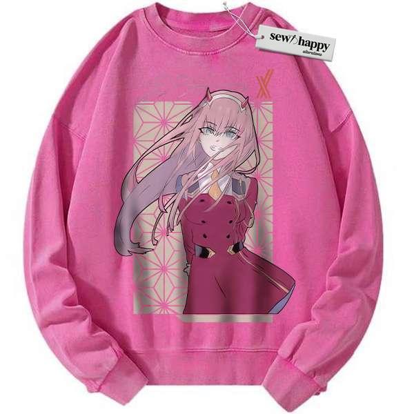 Wash Sweatshirt Zero Two Sweatshirt, Darling in the Franxx Sweatshirt, Anime Sweatshirt, Vintage Sweater